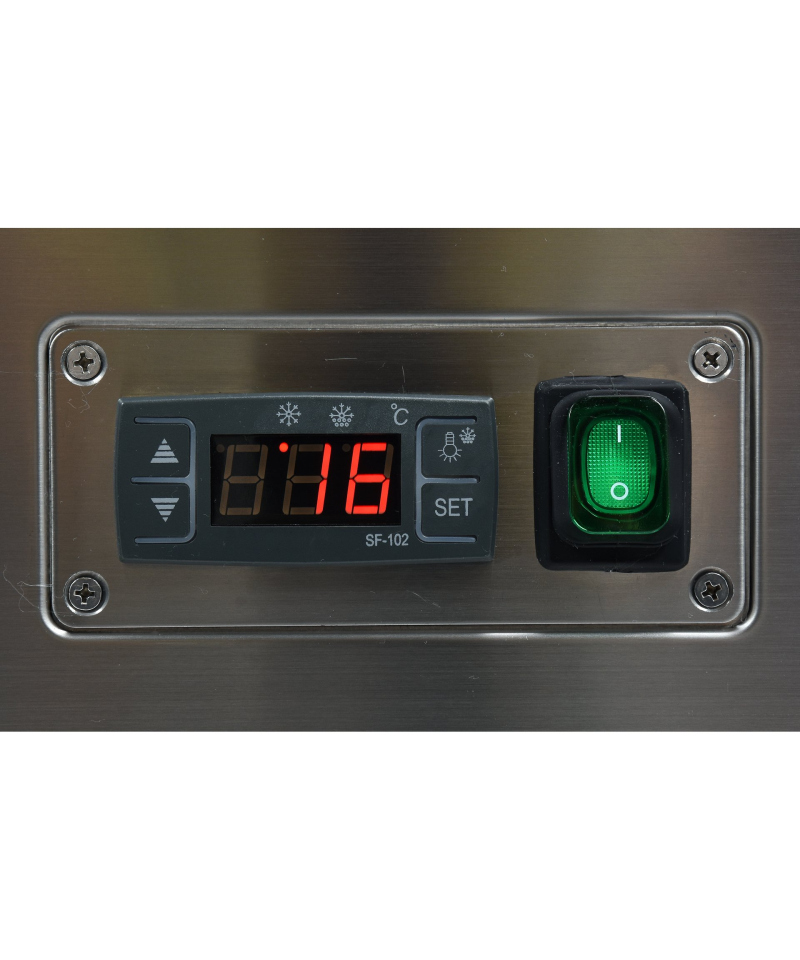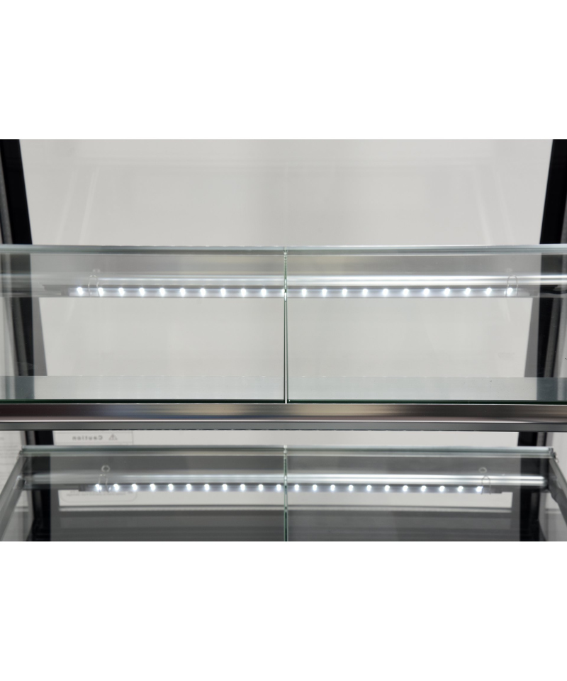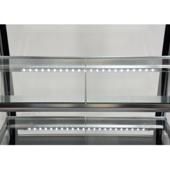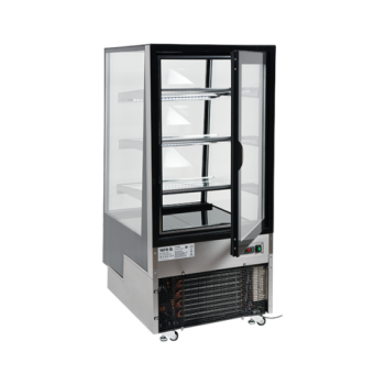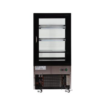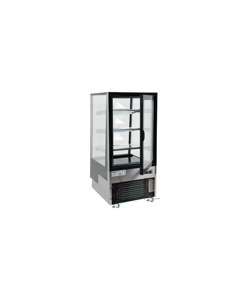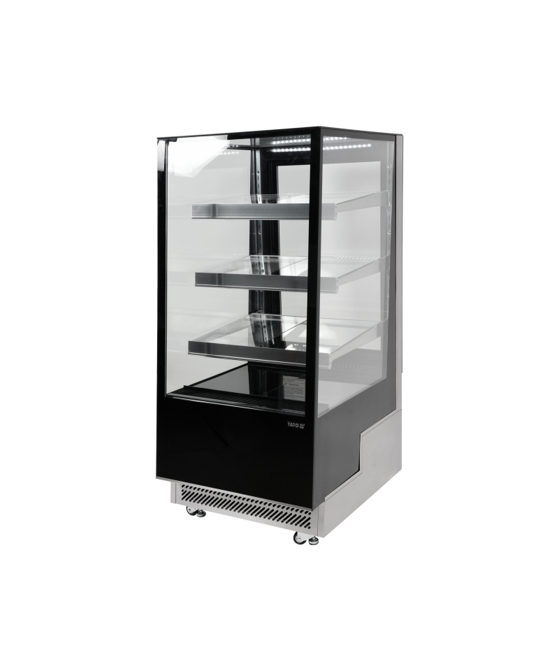Wir präsentieren die freistehende YATO Kühlvitrine mit einem Fassungsvermögen von 350L in einem eleganten schwarzen Finish, mit Abmessungen von 650x805x1445mm. Diese professionelle YATO Vitrine wurde für die effektive Präsentation einer breiten Palette von Produkten entwickelt – von exquisiten Kuchen und Torten, über erfrischende Cocktails, Joghurts und Getränke, bis hin zu frischen Salaten und kleinen Snacks. Die Kombination aus modernem Design und hochwertigen Materialien macht die YATO Kühlvitrine zu einer hervorragenden Ergänzung für Konditoreien, Cafés, Restaurants und verschiedene Verkaufsstellen, die die Aufmerksamkeit der Kunden auf sich zieht. Die integrierte LED-Beleuchtung, unter jedem Regal platziert, unterstreicht perfekt die ästhetischen Qualitäten der präsentierten Produkte und regt zur Auswahl an. Die YATO Vitrine mit einem Fassungsvermögen von 350L ist mit drei Glasablagen mit höhenverstellbarer Befestigung ausgestattet, was eine flexible Anpassung des Raumes an unterschiedliche Bedürfnisse ermöglicht. Der Zugang zum Innenraum erfolgt über bequeme, zu öffnende Glastüren. Sowohl die Türen als auch die vorderen und seitlichen Scheiben bestehen aus doppelschichtigem gehärtetem Glas, was nicht nur eine hohe Haltbarkeit, sondern auch hervorragende Isolationseigenschaften garantiert. Die Vitrine arbeitet in einem optimalen Temperaturbereich von 0 bis 12°C und verwendet das umweltfreundliche Kältemittel R290. Die angewandte Umluftkühlungstechnologie in Kombination mit der automatischen Abtaufunktion gewährleistet einen äußerst effizienten und energieeffizienten Betrieb. Die Umluftkühlung garantiert eine gleichmäßige Luftverteilung in der gesamten Vitrine und hält eine stabile Temperatur auf jedem Regal. Der durchschnittliche jährliche Energieverbrauch beträgt 2669 kWh. Die intuitive Steuerung der Vitrine erfolgt über ein elektronisches Panel mit einer übersichtlichen Temperaturanzeige. Die YATO Vitrine mit 450W Leistung und Abmessungen von 650x805x1445mm ist trotz ihrer Größe außergewöhnlich leicht zu manövrieren. Dank der speziell entwickelten Rollen lässt sie sich ohne geringste Anstrengung an jeden beliebigen Ort verschieben. Zusätzlich ermöglichen ausziehbare stabilisierende Füße eine präzise Nivellierung des Geräts, um dessen sichere und stabile Positionierung zu gewährleisten.