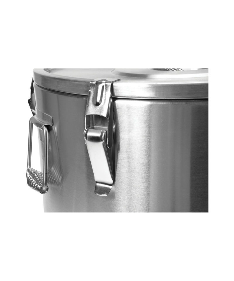 Die intelligente Konstruktion der Thermoskanne mit präzisen Prägungen ermöglicht ein effizientes Stapeln (Übereinanderstapeln) von Behältern mit gleichem Durchmesser. Diese innovative Lösung ermöglicht eine optimale Nutzung des Lagerraums, selbst unter beengten Verhältnissen. Das Stapeln von Thermoskannen mit einem Fassungsvermögen von bis zu 35 L ist möglich.