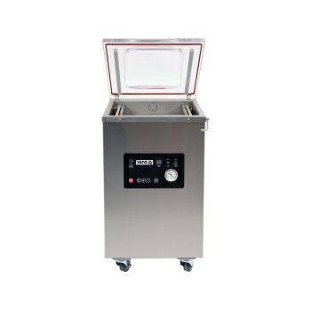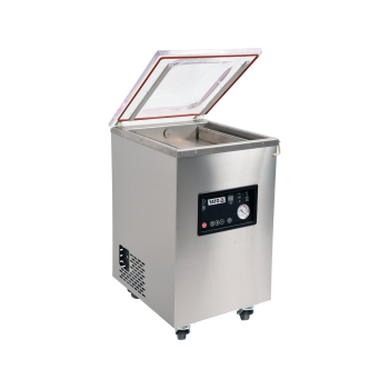 Diese professionelle Kammer-Vakuumverpackungsmaschine ist eine unverzichtbare Ausstattung in jedem Gastronomiebetrieb. Dank ihr behalten Lebensmittel, ohne Sauerstoffzugang, ihre Frische und Nährwerte über einen wesentlich längeren Zeitraum. Vakuumverpackte Produkte können über einen außergewöhnlich langen Zeitraum sicher im Kühl-Gefrierschrank gelagert werden, was zu einer erheblichen Minimierung von Verlusten führt, die durch die Verschwendung ungenutzter Artikel oder solcher, die sich dem Verfallsdatum nähern, entstehen. Darüber hinaus eröffnet das Gerät die Möglichkeit der effizienten Lagerung saisonaler Produkte.