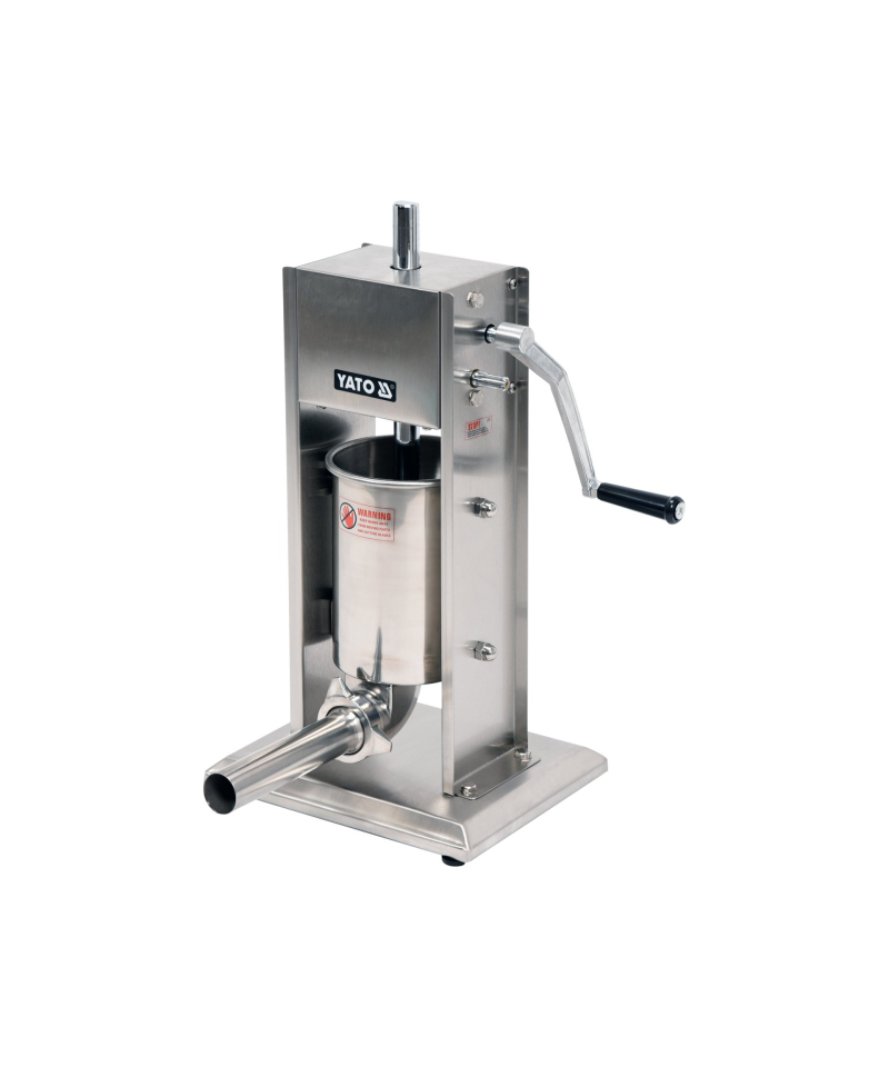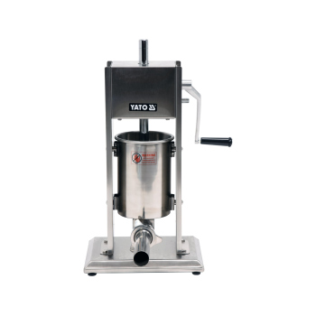Entdecken Sie die professionelle Wurstfüllmaschine der Marke YATO, die sich durch ein Fassungsvermögen von 3L und eine beeindruckende Leistung von bis zu 31kg/h auszeichnet.