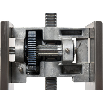 Das Gerät ist mit einem robusten Zahnstangenmechanismus mit 2-stufigem Getriebe ausgestattet, der die Wahl der optimalen Füllgeschwindigkeit ermöglicht. Dadurch kann eine Leistung von 11kg/h erreicht werden, wobei die Arbeit an die Bedürfnisse angepasst wird.