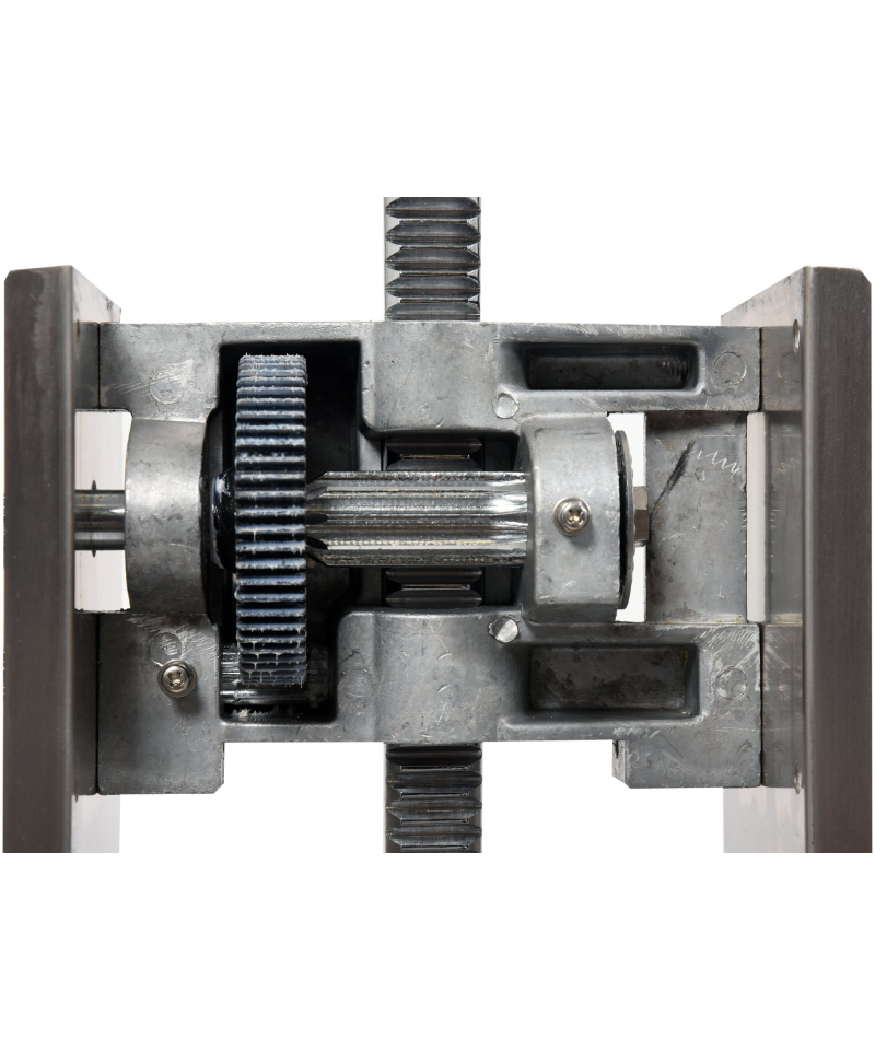 Das Herzstück der Füllmaschine ist ein fortschrittlicher Zahnstangenmechanismus mit einem 2-Gang-Getriebe. Er ermöglicht dem Benutzer die Wahl zwischen zwei Füllgeschwindigkeiten, was eine präzise Anpassung der Arbeit an die Bedürfnisse und eine Leistung von 12 kg/h ermöglicht.