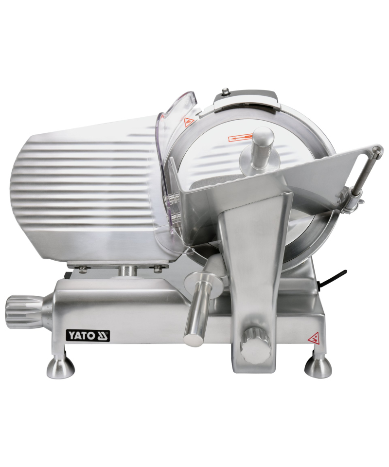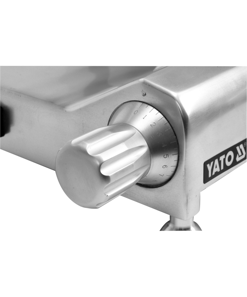 Entdecken Sie den professionellen Aufschnittschneider der Marke YATO YG-03130, ausgestattet mit einer beeindruckenden Scheibe von **300mm** Durchmesser.