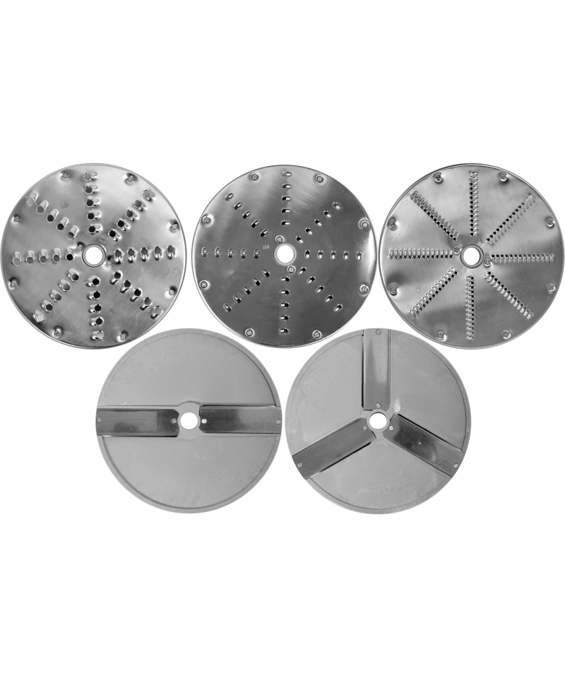 Im Lieferumfang des Gemüseschneiders sind 5 präzise, austauschbare Schneidscheiben mit einem beeindruckenden Durchmesser von 205mm enthalten, die vielfältige Möglichkeiten zur Gemüsezubereitung eröffnen und das Schneiden in verschiedene Formen und Dicken ermöglichen: