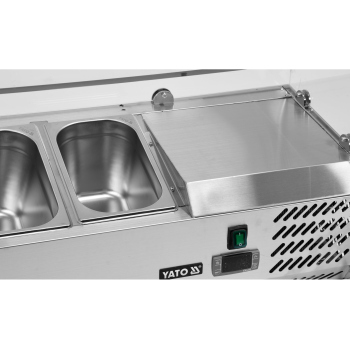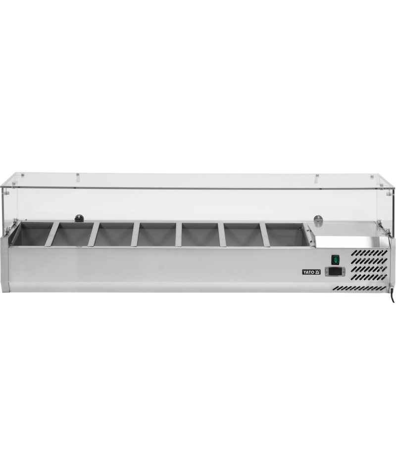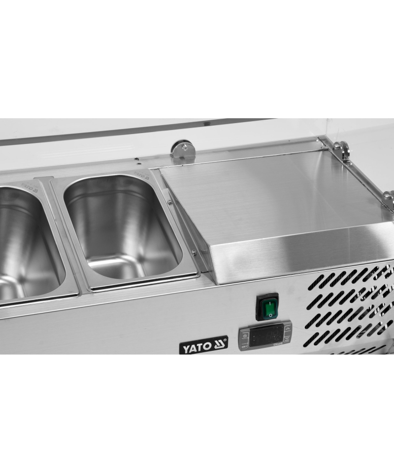 Diese innovative Aufsatz-Kühlvitrine der Marke YATO garantiert optimale Lagerbedingungen für Zutaten zur Zubereitung frischer Speisen wie Pizzen, Salate oder Sandwiches und gewährleistet deren längere Frische und Sicherheit. Ihr modernes Design, kombiniert mit der Verwendung hochwertiger Materialien, macht die YATO Vitrine zu einem eleganten und funktionalen Ausstattungsmerkmal in Restaurants, Pizzerien, Bars und Hotels, das den Inhalt perfekt zur Geltung bringt.