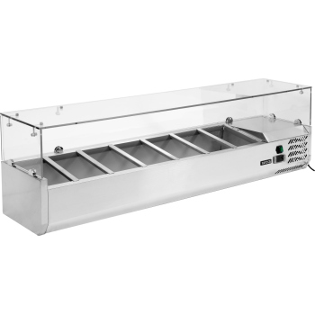 Entdecken Sie Zuverlässigkeit und Funktionalität mit der 7x1/4 GN Aufsatz-Kühlvitrine der Marke YATO YG-05322, ideal für die professionelle Gastronomie.