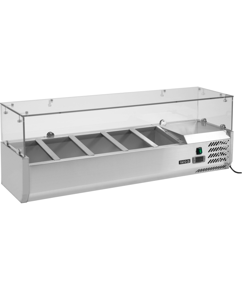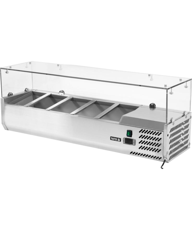 Wir stellen die professionelle Aufsatz-Kühlvitrine für 5 GN 1/4 Behälter, Modell YG-05320 der renommierten Marke YATO vor.