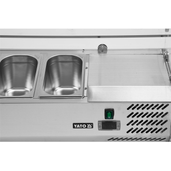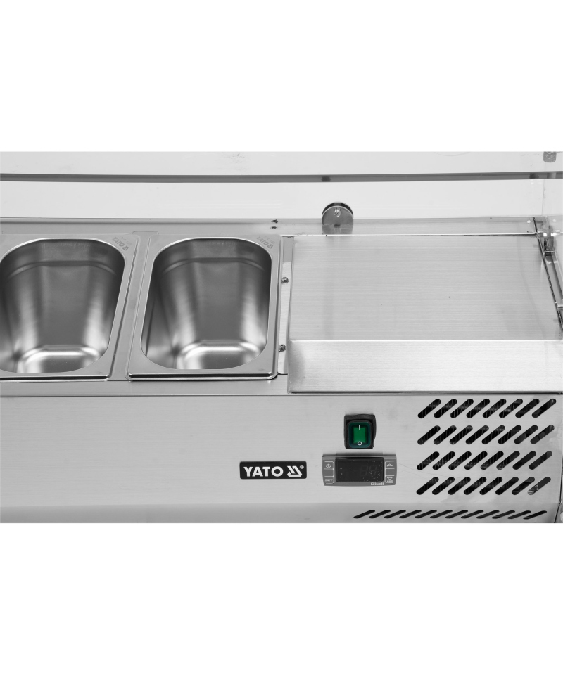 Diese YATO Aufsatzkühlvitrine garantiert eine optimale Temperatur für die Frische der Zutaten, die für die Zubereitung von Pizzen, Salaten, Sandwiches und vielen anderen Gerichten unerlässlich sind. Ihr modernes Design in Kombination mit hochwertigsten Materialien macht die YATO Vitrine zu einem eleganten und funktionalen Ausstattungsmerkmal jeder professionellen Küche – von Restaurants und Pizzerien bis hin zu Bars und Hotels.