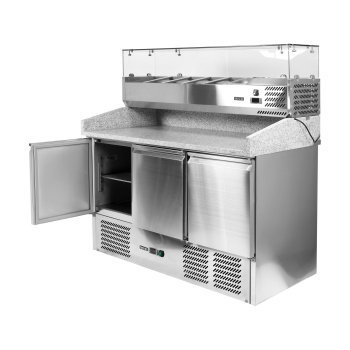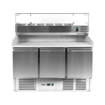 3-Türiger Pizzakühltisch Mit Kühlaufsatz Und Granitarbeitsplatte