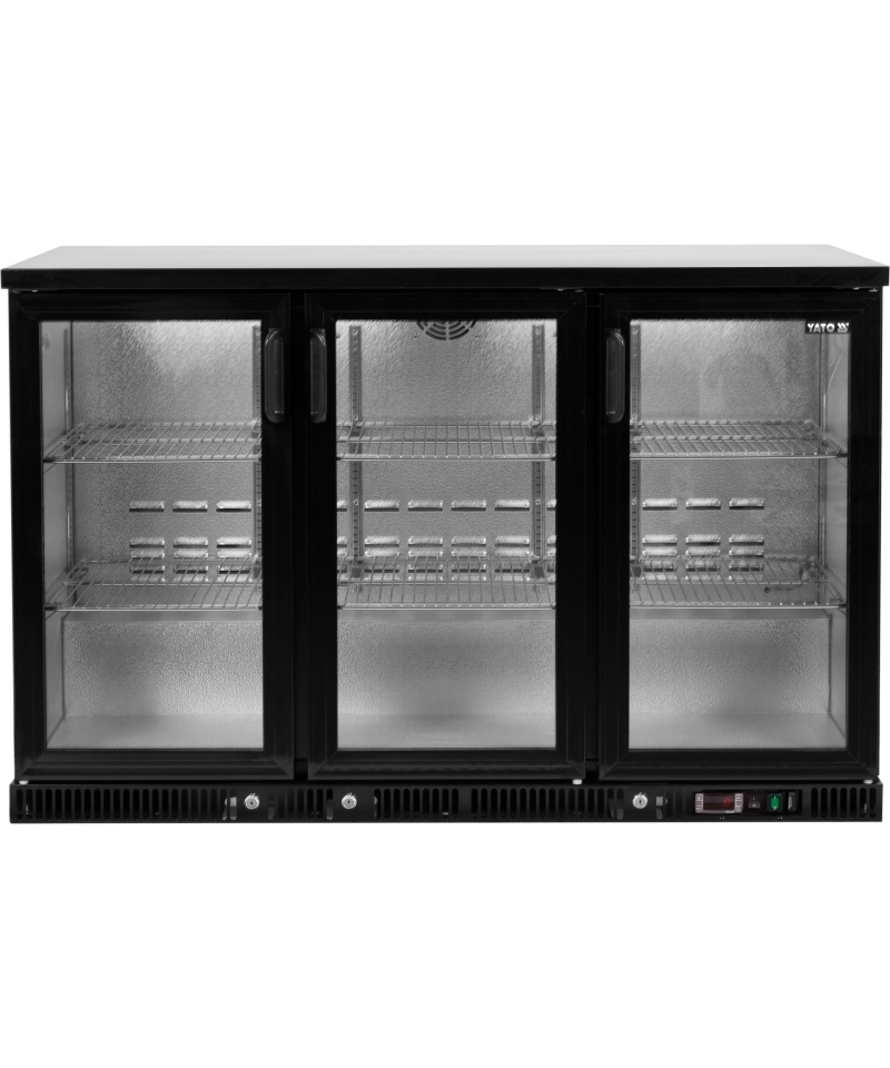 Entdecken Sie die professionelle dreitürige Flaschenkühlschrank-Vitrine der Marke YATO, Modell YG-05360.