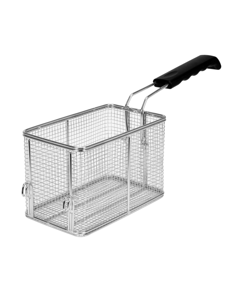 Die YATO Fritteuse ist mit einem extrem robusten Korb mit den Maßen 200x135x140mm ausgestattet, der über einen ergonomischen, Kunststoff-, nicht erhitzenden Griff verfügt, der Komfort und Sicherheit bei der Nutzung gewährleistet. Speziell entwickelte Haken ermöglichen das bequeme Aufhängen des Korbs direkt über dem Behälter, was das Risiko von Ölspritzern auf die Arbeitsplatte effektiv minimiert. Diese Lösung trägt erheblich zur Sauberkeit am Arbeitsplatz bei und verkürzt die Reinigungszeit.