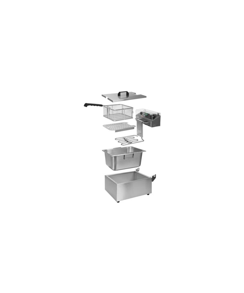Sowohl das robuste Gehäuse als auch der praktische Deckel, die zur Ausstattung der Fritteuse gehören, sind aus hochwertigem Edelstahl gefertigt. Dies gewährleistet nicht nur eine außergewöhnliche Langlebigkeit und Hygiene, sondern auch eine bemerkenswerte Reinigungsfreundlichkeit und die einfache Pflege des Geräts in perfekter Sauberkeit.