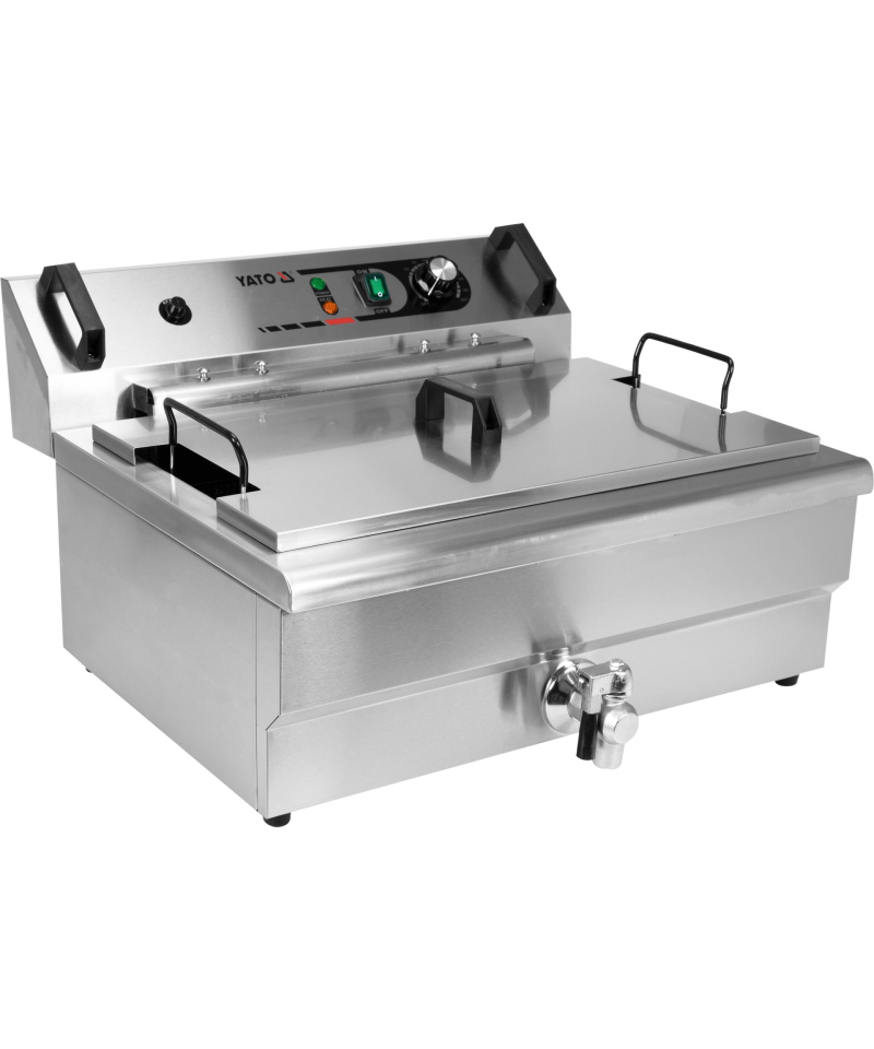 Professionelle Fritteuse mit Ablasshahn, mit einem beeindruckenden 23L Fassungsvermögen, der Marke YATO, Modell YG-04640.