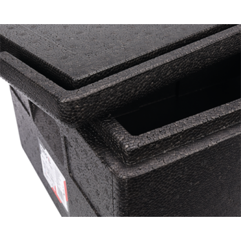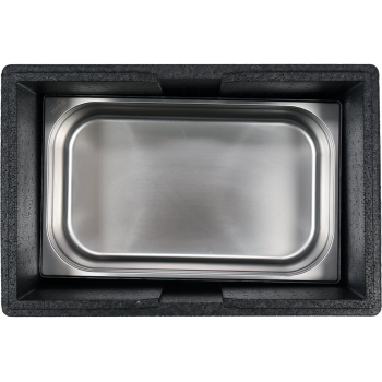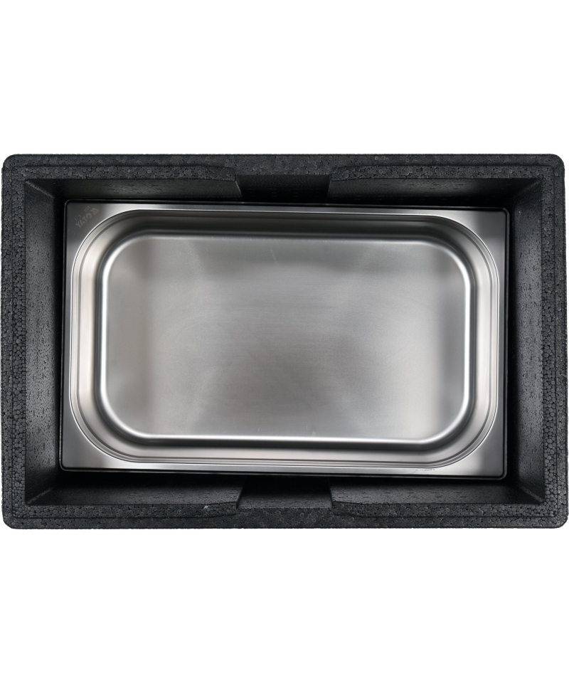 Der Behälter zeichnet sich durch optimale Außenmaße von 600 x 400 x 283 mm bei einer Wandstärke von 30 mm aus, was ein Fassungsvermögen von 40 Litern gewährleistet. Die Innenmaße von 540 x 340 x 222 mm wurden präzise für den Transport verschiedener GN-Behälter angepasst, darunter: