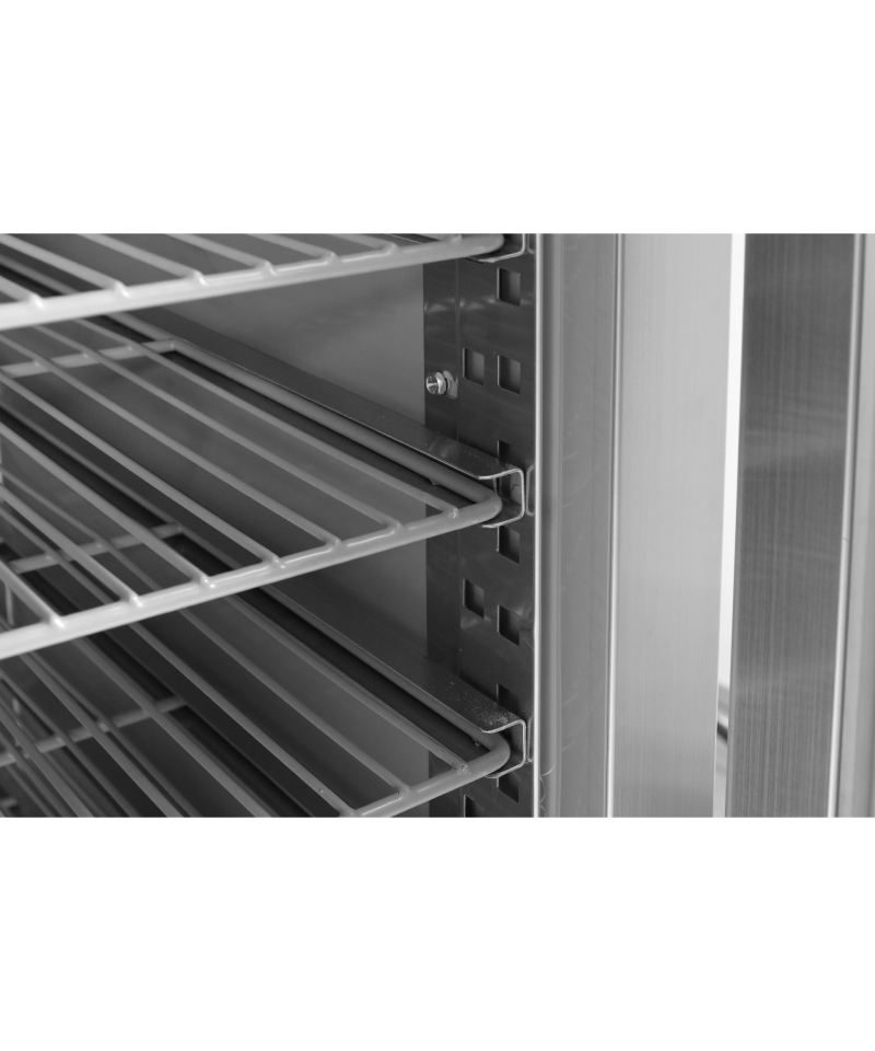Wir präsentieren einen professionellen Gefrierschrank, der ideal für die Lagerung von Eisbehältern geeignet ist und mit einem effizienten oberen Aggregat ausgestattet ist. Dies ist eine unentbehrliche Lösung für Eisdielen, Cafés und alle Gastronomiebetriebe, die sich auf die Zubereitung exquisiten handwerklichen Eises spezialisiert haben, und garantiert optimale Lagerbedingungen sowie einfachen Zugang.