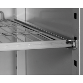 \t- Selbstschließende Tür mit eingebautem Schloss, die die Sicherheit der gelagerten Artikel gewährleistet und Kälteverluste minimiert.
