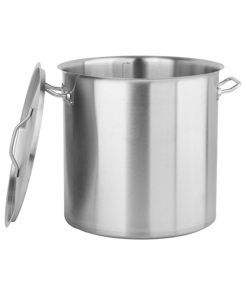 Ein außergewöhnlicher hoher Topf mit Deckel, für Profis konzipiert, mit beeindruckenden Maßen von 40x40 cm und einem Fassungsvermögen von 50 Litern.