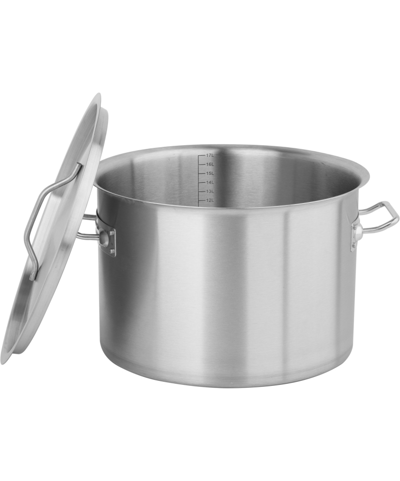 Entdecken Sie einen professionellen niedrigen Topf mit Deckel, mit beeindruckenden Abmessungen von 32x22 cm und einem Fassungsvermögen von 17 Litern.