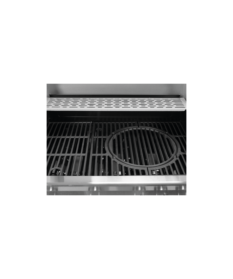 - Speziell profilierte Brennerabdeckungen (Aromatisierer) mit präzisen Aussparungen, die die Wärme gleichmäßig verteilen und Säfte verdampfen lassen, wodurch den Speisen ein einzigartiges Aroma verliehen wird. \t