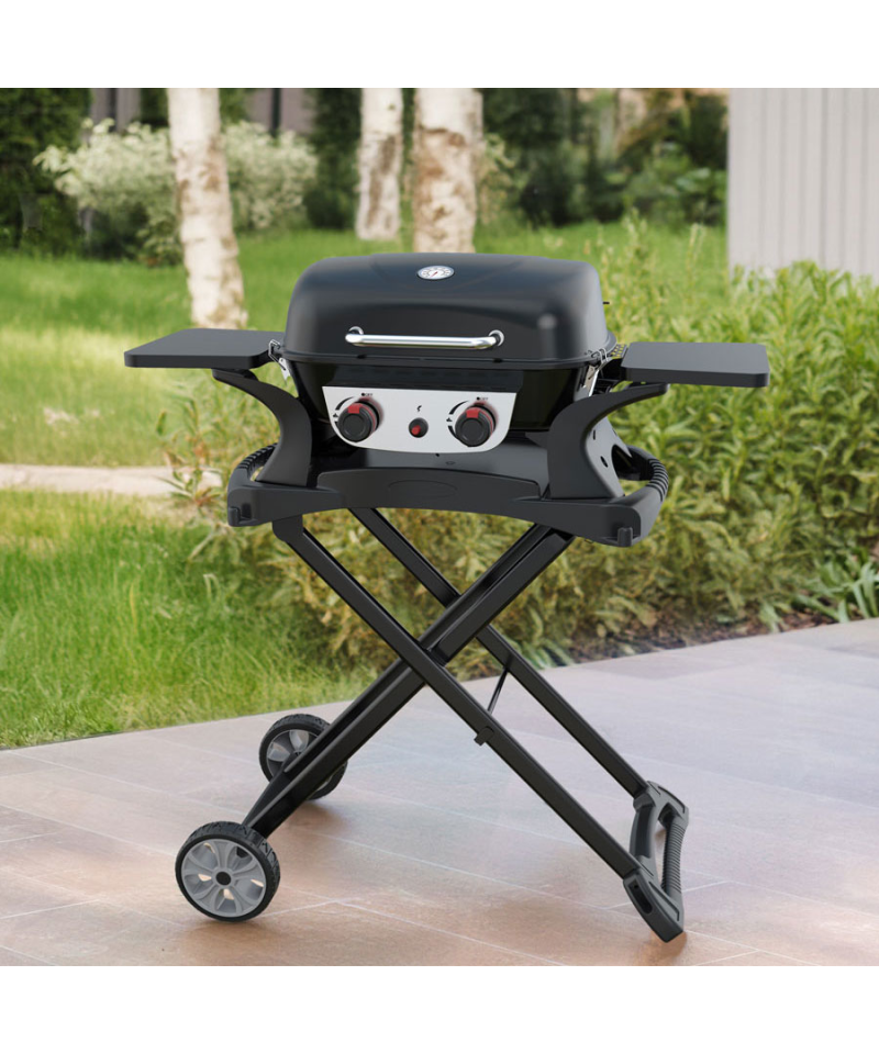 Ergonomisch gestaltete Griffe erleichtern das Tragen des Wagens zusammen mit dem Grill erheblich sowie dessen bequemes Bewegen in zusammengeklappter Position, was volle Kontrolle gewährleistet.