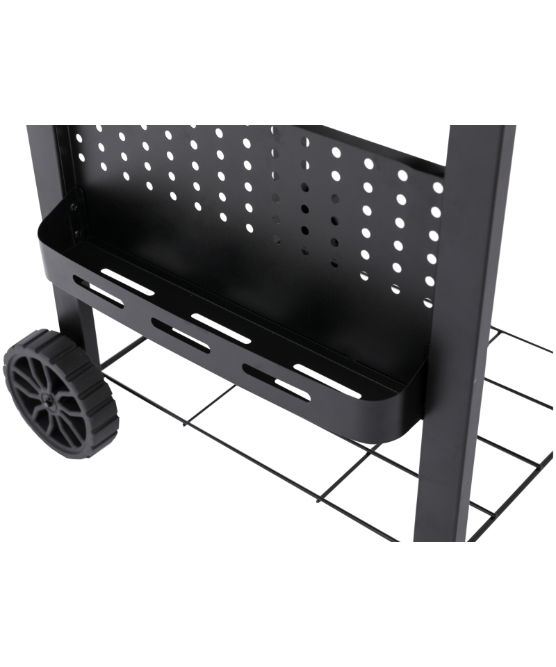 Klappbare Seitenablagen, eine geräumige untere Ablage und eine zusätzliche, schmale Ablage an der Vorderseite des Grills bieten viel Platz sowohl für die bequeme Zubereitung von Speisen als auch für die Aufbewahrung aller notwendigen Zubehörteile.