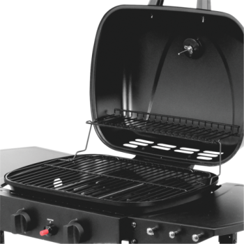 Ausgestattet mit zwei effizienten Brennern, garantiert er schnelles und gleichmäßiges Aufheizen. Der geräumige, emaillierte Rost bietet reichlich Platz für die Zubereitung verschiedener Gerichte, und ein praktischer Warmhalterost hält fertige Speisen auf optimaler Temperatur.