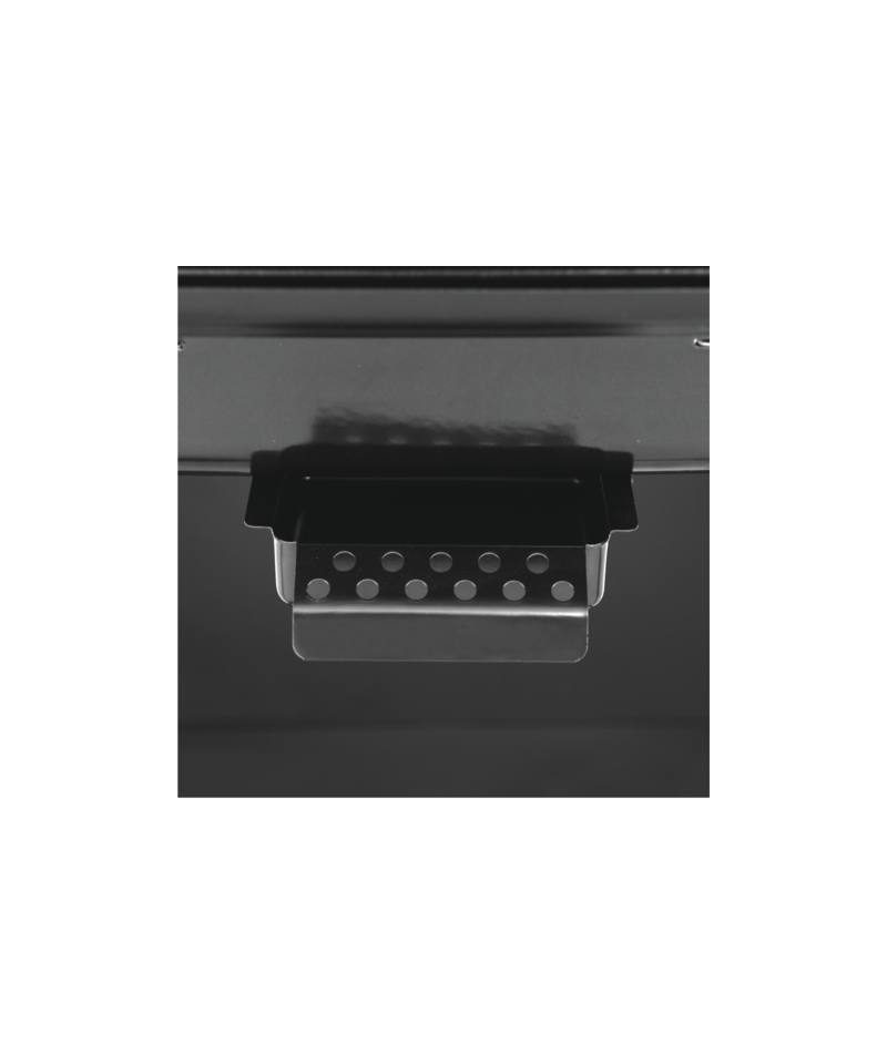 ✔ Frontplatte: schwarz pulverbeschichteter Stahl