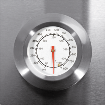 | Der robuste Deckel, ausgestattet mit einem präzisen Thermometer, garantiert eine optimale und gleichmäßige Temperaturverteilung, was zu schnellerem und effizienterem Grillen führt. Zusätzlich bietet er einen hervorragenden Windschutz, und der Rauch der zubereiteten Speisen bereichert sie mit einem tiefen Geschmack und Aroma. |