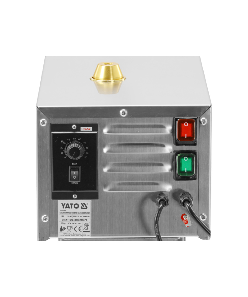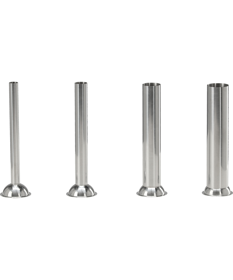Das Gerät zeichnet sich durch ein Set von vier Trichtern mit unterschiedlichen Durchmessern aus, was Flexibilität bei der Herstellung einer breiten Palette von Produkten – von dünnen Würstchen bis hin zu dicken Würsten – garantiert, die auf Ihre individuellen Vorlieben zugeschnitten sind.