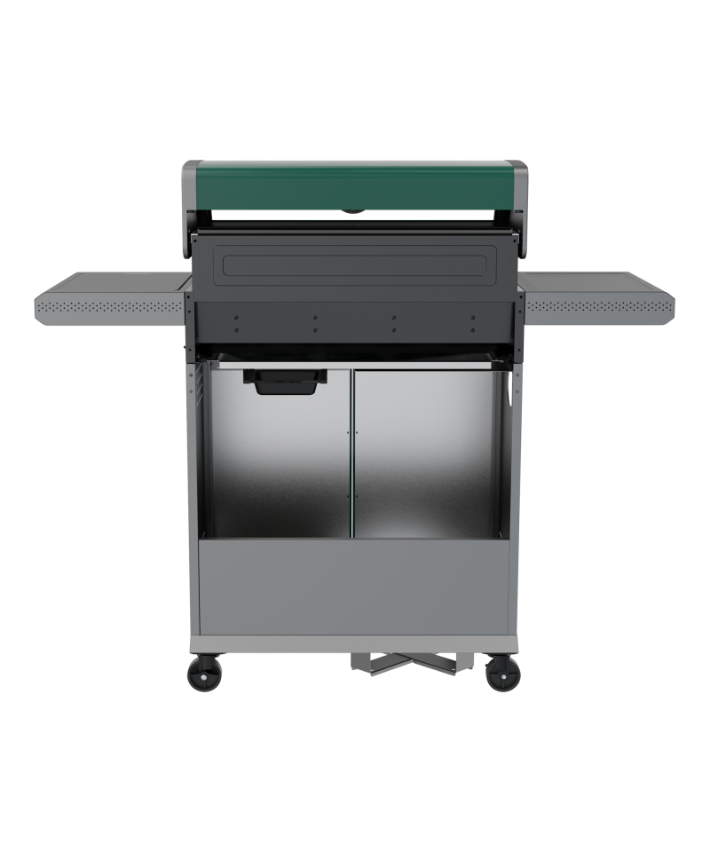 Der vielseitige 2,2 kW Seitenbrenner erweitert die kulinarischen Möglichkeiten und erlaubt das Kochen und Erwärmen von Speisen in einem Topf oder einer Pfanne. Der Bedienkomfort wird durch einen speziellen Platz für die Gasflasche und ein innovatives Sichtfenster im Deckel erhöht, dank dessen Sie den Grillvorgang mühelos überwachen können, ohne ihn anheben zu müssen.