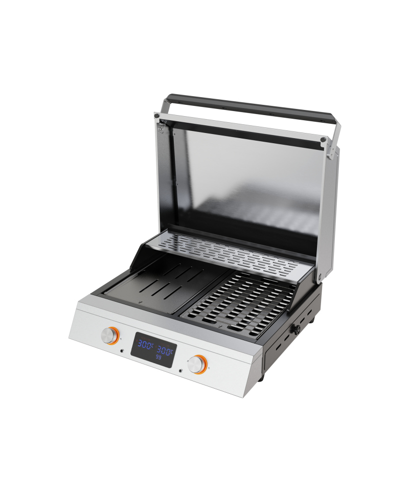 - Präzise Temperaturregelung in einem weiten Bereich von 50 bis 300°C, mit der Möglichkeit der Änderung um 5°C, ermöglicht eine ideale Anpassung der Heizbedingungen an jede Art von Speise – vom sanften Erwärmen bis zum intensiven Grillen. Zusätzlich ermöglicht die Zwei-Zonen-Temperaturregelung eine unabhängige Steuerung zweier Rostbereiche, was die gleichzeitige Zubereitung verschiedener Gerichte unter optimalen Bedingungen ermöglicht. \t\t