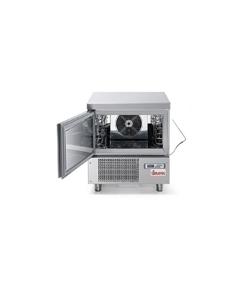 Hochleistungsfähiges und einfach zu bedienendes Sirman Umluftkühlgerät mit einem Fassungsvermögen von 70 Litern und Platz für 5 GN 1/1-Einschübe (Gastronorm). Sehr leistungsstark und schnell, ideal für gastronomische Betriebe, Hotelrestaurants, Konditoreien, Eisdielen und Catering-Unternehmen. Das Gerät ist aus Edelstahl gefertigt und verfügt über eine verteilte Belüftung, die Schäden an den gelagerten Produkten verhindert.