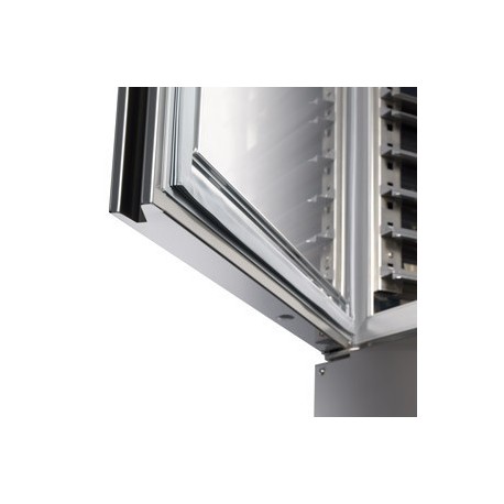 Das Schockkühlgerät verfügt über eine verteilte Belüftung, die Schäden an den gelagerten Produkten verhindert. Es ist vollständig programmierbar und kann an die individuellen Bedürfnisse angepasst werden. Es verfügt außerdem über einen verstellbaren Abstand zwischen den Einschüben.