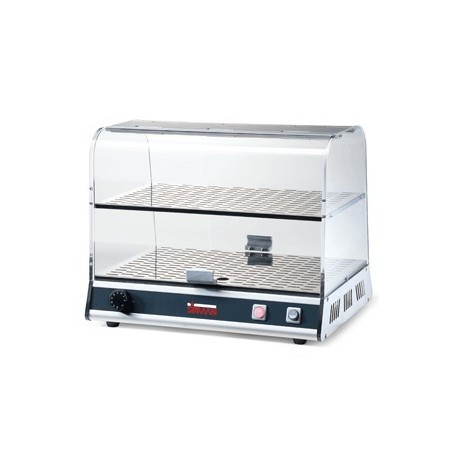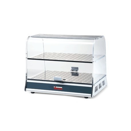 Die Sirman Vitrine, Modell Vista P2N, ist eine praktische Lösung zur Präsentation und Aufbewahrung verschiedener Snacks wie Croissants, Kuchen und anderer Leckereien. Dieser robuste Ständer ist in einer Version mit einer oder zwei Ebenen erhältlich, was eine effiziente Nutzung der Ausstellungsfläche ermöglicht.