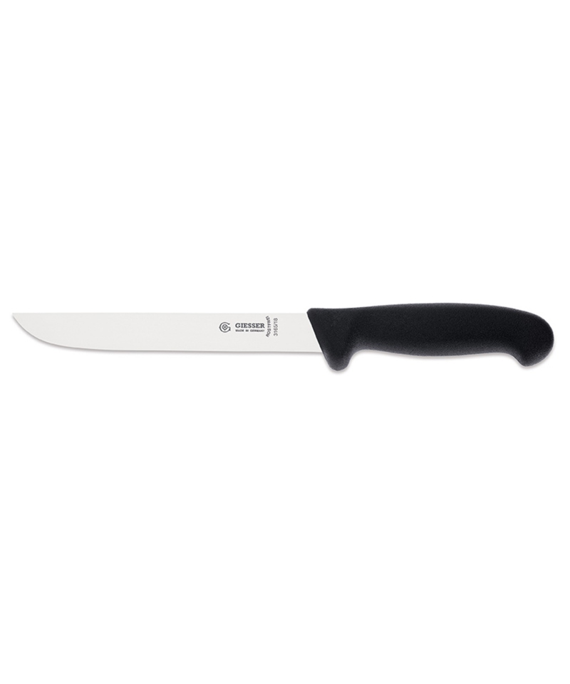 Messer der renommierten deutschen Marke Giesser, entwickelt zum Ausbeinen von Fleisch mit einer Klinge aus hochwertigem Chrom-Molybdän-Stahl, der im Vakuum auf 56-57 Grad Rockwell gehärtet wurde. Starre, gerade und breite Klinge mit einer Länge von 18 cm.