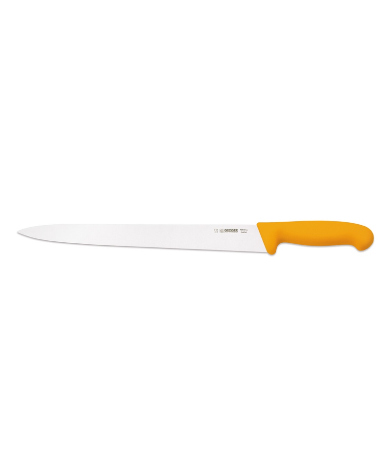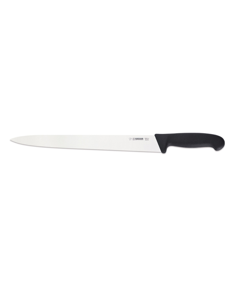 Das Giesser 7305 31 ist ein professionelles Aufschnitt- und Wurstmesser, entwickelt für Küchenfreunde, die nicht nur höchste Qualität, sondern auch Präzision und Komfort bei der Zubereitung ihrer Speisen schätzen. Seine 31 cm lange Klinge mit matter, polierter Oberfläche und spitzer Spitze ist das ideale Werkzeug zum präzisen Schneiden von Aufschnitt, Wurst und anderen Fleischprodukten.