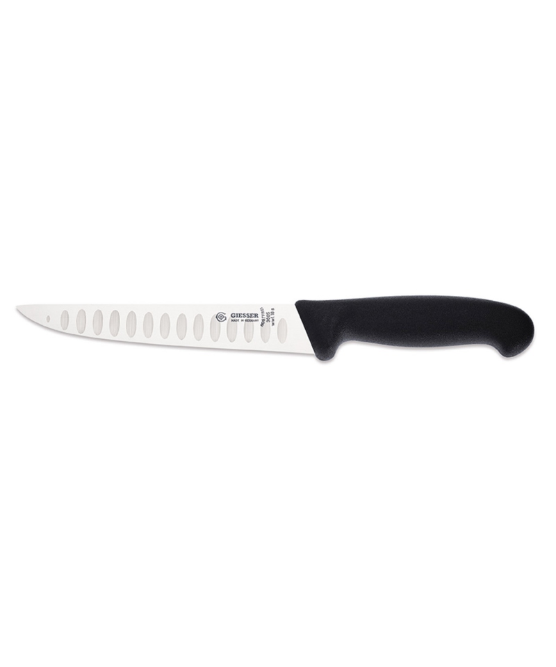 Professionelle Schärfe der Marke Giesser drückt sich in dem Schlachtmesser aus, dessen Klinge aus hochwertigem Chrom-Molybdän-Stahl besteht, vakuumgehärtet auf eine Rockwell-Härte von 56-57. Die extrem polierte Oberfläche garantiert höchste Rostbeständigkeit und Schnitthaltigkeit, erreicht durch sorgfältigen Handschliff.
