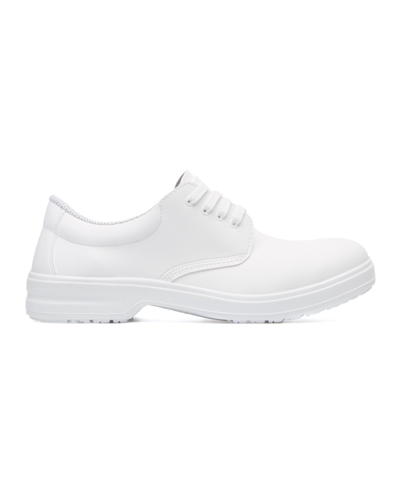 Niedrige, bequeme Arbeitsschuhe in weiß, bestimmt für den Einsatz in verschiedenen Branchen. Lebensmittelindustrie, Sanitärbereich, chemische Industrie sowie für den Einsatz in Hotels, Restaurants und im Catering. Das Obermaterial besteht aus atmungsaktivem und wasserdichten Texfiber-Gewebe. Bestimmt für Bereiche, in denen ein angemessener Schutz der Füße vor Flüssigkeiten und feuchter Umgebung erforderlich ist. Die Komposit-Zehenschutzkappe schützt die Zehen optimal vor Stößen und herabfallenden Gegenständen.