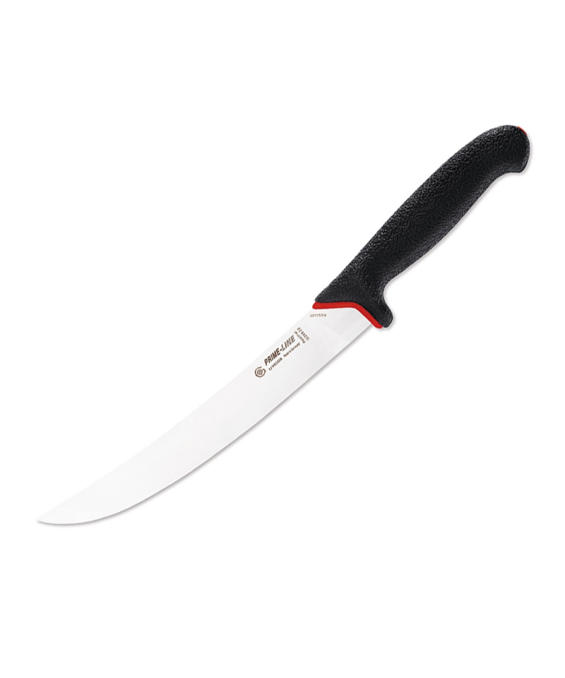 Die Klinge ist gebogen und schmal, die Spitze scharf. Das Messer hat einen zweischichtigen Griff. Einen harten Kern und eine äußere, weiche Schicht, die ein ermüdungsfreies und gelenkschonendes Arbeiten ermöglicht, was zur Produktivität beiträgt. Die Nase hingegen ist so gestaltet, dass sie einen gewissen Schutz gegen das Abrutschen der Hand auf der Klingenkante bietet.