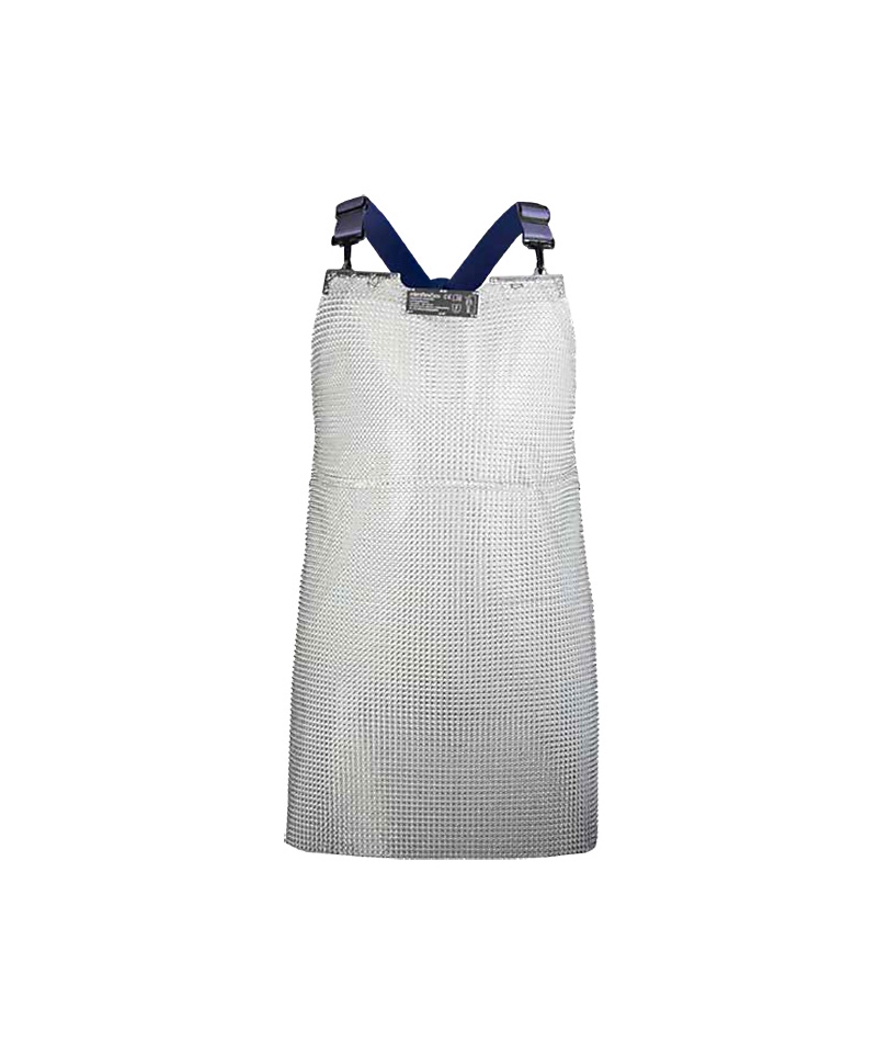 Die Kettenhemd-Schürze erfüllt die Norm EN 13998 - Stufe zwei. Sie bietet Schutz vor Verletzungen an Brustkorb, Bauch, Hüften, Leisten und Oberschenkeln von Mitarbeitern in Schlachthöfen, Metzgereien, aber auch in der Kunststoff- und Leder verarbeitenden Industrie. Schützt vor Verletzungen wie Schnitt- und Stichverletzungen.