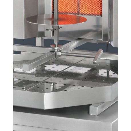 Gas-Toaster, ideal zum Rösten von zylinderförmigem Fleisch, mit einer maximalen Höhe (Zylinderlänge) von bis zu 45 cm und einem Gewicht von bis zu 40 kg.