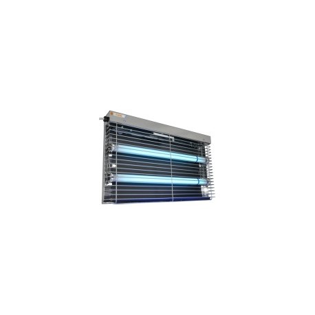 Die schlanke Bauform des Geräts macht die Lampe für die Montage an verschiedenen Stellen geeignet - von Industrieoberflächen bis hin zu öffentlichen Bereichen. Möglich ist sowohl die Wandmontage als auch die hängende Montage an der Decke. Der Klebeinsatz ist im Verhältnis zur Größe der gesamten Lampe sehr groß und nimmt die gesamte Rückwand der Konstruktion ein. Die verwendeten UVA-Leuchtstoffröhren sind standardmäßig foliert, haben jeweils eine Leistung von 15 W und ermöglichen der Lampe eine Reichweite von 80 m². Ein weiterer Vorteil ist das verwendete Material - Edelstahl - das eine einfache Reinigung und ein dauerhaft ansprechendes Aussehen gewährleistet. Die Lampe hat 2 Jahre Garantie.