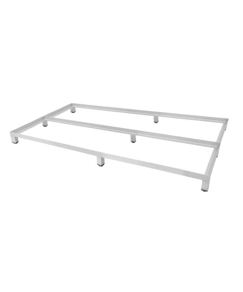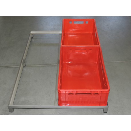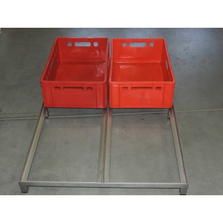 Regal mit 6 Fächern zur Lagerung von E2-Behältern. Die robuste Konstruktion ermöglicht die Lagerung von Behältern mit einem Gewicht von bis zu 600 kg inklusive Inhalt.