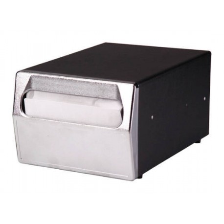 Serviettenspender aus Metall mit verchromter Frontblende für einseitige Ausgabe.