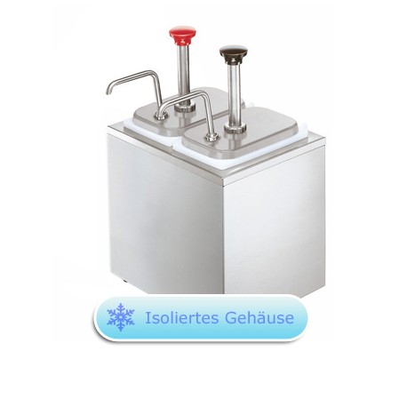 Diese Station ist die ideale Lösung zum Servieren von Soßen in zwei verschiedenen Geschmacksrichtungen. Aus Edelstahl gefertigt, garantiert sie Langlebigkeit und ein ansprechendes Aussehen. Zwei Pumpen ermöglichen das gleichzeitige Servieren von zwei verschiedenen Soßen, was bequem und effizient ist. Die Behälter mit je 3,3 Litern Fassungsvermögen bieten ausreichend Soßenvorrat für einen längeren Einsatz, und das isolierte Gehäuse hilft, die richtige Temperatur der Soßen aufrechtzuerhalten.