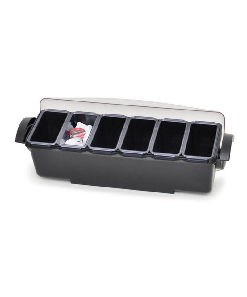 Dieses Modell verfügt über 6 Fächer mit einem Fassungsvermögen von je 710 ml, wodurch die Trennung und Aufbewahrung verschiedener Zutaten an einem Ort ermöglicht wird. Seine Abmessungen betragen 509 x 202 x 200 mm, was ihn zu einem komfortablen und funktionalen Element der gastronomischen Ausstattung macht. Dies ist die ideale Lösung für ein effizientes Raummanagement und die Aufbewahrung in der Gastronomie.