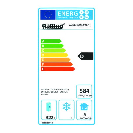 Kühlschrank mit Glastür, Zwangsumluft, automatischer Abtauung und Kondenswasserverdunstung, mit digitaler Temperaturregelung. Zentrale Kühlung mit Heißgas-Kondenswasserablauf. Hygienisch gefertigter Innenraum mit abgerundeten Kanten und geprägtem Boden. Verdampfer außerhalb des Kühlraums angebracht. Monobloc-Aggregat oben am Gerät angebracht.