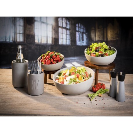Schale aus Beton mit 220 mm Durchmesser und 1,1 l Fassungsvermögen. Nicht spülmaschinengeeignet, stapelbar
