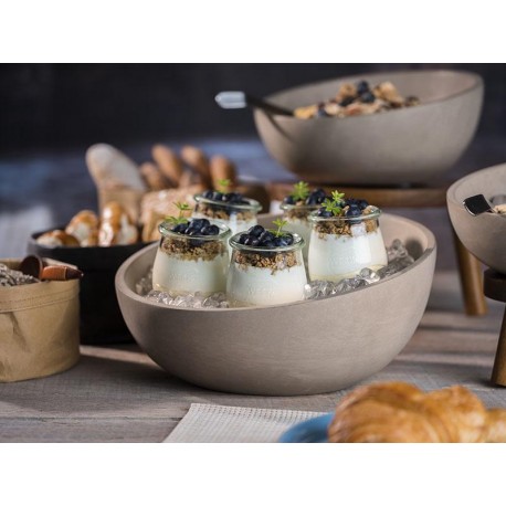 Schale aus Beton mit 295 mm Durchmesser und 2,5 l Fassungsvermögen. Nicht spülmaschinengeeignet, stapelbar