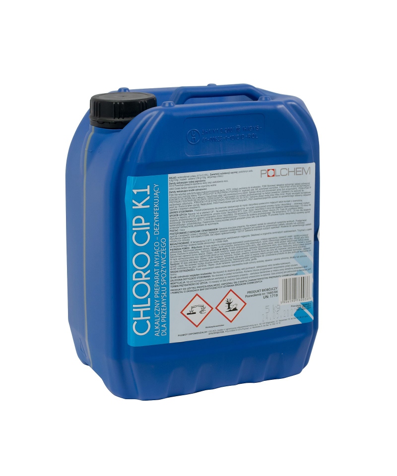 CHLOROCIP K1 ist ein alkalisches, niedrigschäumendes, stark konzentriertes Reinigungs- und Desinfektionsmittel. Es ist für die Lebensmittelindustrie (Molkereien, Metzgereien, Getränkeproduzenten) und die Landwirtschaft bestimmt. Das Desinfektionsmittel ist stabilisiertes Aktivchlor in Form von Natriumhypochlorit. Es verursacht keine Korrosion von säurebeständigem Stahl. Ionische Tenside entfernen effektiv organische Verunreinigungen wie Proteine (auch verkohlte), Fette, Zucker, Blut.